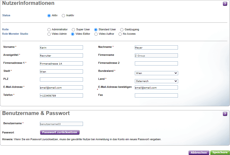 Bei Monster können Benutzer verschiedene Rollen einnehmen. Diese Rollen schränken die Benutzer darin ein, welche Aufgaben sie erledigen können.