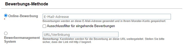 Mit Monster können Sie zwischen zwei Bewerbungsmethoden wählen: